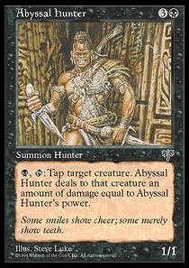 {B}, {T}: Tap target creature. Abyssal Hunter deals to that creature an amount of damage equal to Abyssal Hunter's power.