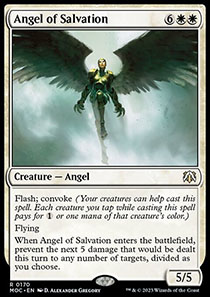 When Angel of Salvation enters the battlefield, prevent the next 5 damage that would be dealt this turn to any number of targets, divided as you choose.