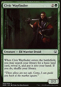 When Civic Wayfinder enters the battlefield, you may search your library for a basic land card, reveal it, and put it into your hand. If you do, shuffle your library.