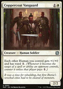 Each other Human you control gets +1/+0 and has ward {1}. (Whenever it becomes the target of a spell or ability an opponent controls, counter it unless that player pays {1}.)