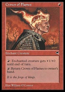 {R}: Enchanted creature gets +1/+0 until end of turn. {R}: Return Crown of Flames to owner's hand.