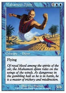 Of royal blood among the spirits of the air, the Mahamoti Djinn rides on the wings of the winds. As dangerous in the gambling hall as he is in battle, he is a master of trickery and misdirection.