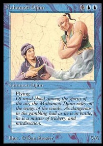 Of royal blood among the spirits of the air, the Mahamoti Djinn rides on the wings of the winds. As dangerous in the gambling hall as he is in battle, he is a master of trickery and misdirection.