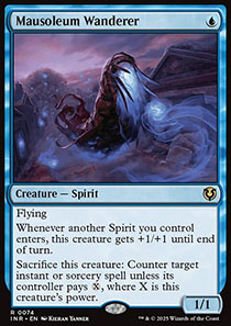 Whenever another Spirit you control enters, Mausoleum Wanderer gets +1/+1 until end of turn.