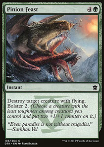 Destroy target creature with flying. Bolster 2. (Choose a creature with the least toughness among creatures you control and put two +1/+1 counters on it.)