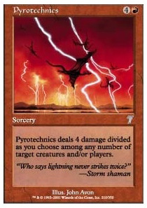 Pyrotechnics deals 4 damage divided as you choose among any number of target creatures and/or players.