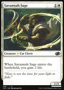 When Savannah Sage enters the battlefield, you gain 2 life.