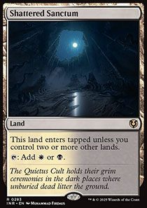 Shattered Sanctum enters tapped unless you control two or more other lands.