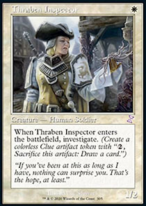 When Thraben Inspector enters the battlefield, investigate. (Create a colorless Clue artifact token with "{2}, Sacrifice this artifact: Draw a card.")