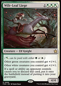 If a spell or ability an opponent controls causes you to discard Wilt-Leaf Liege, put it onto the battlefield instead of putting it into your graveyard.